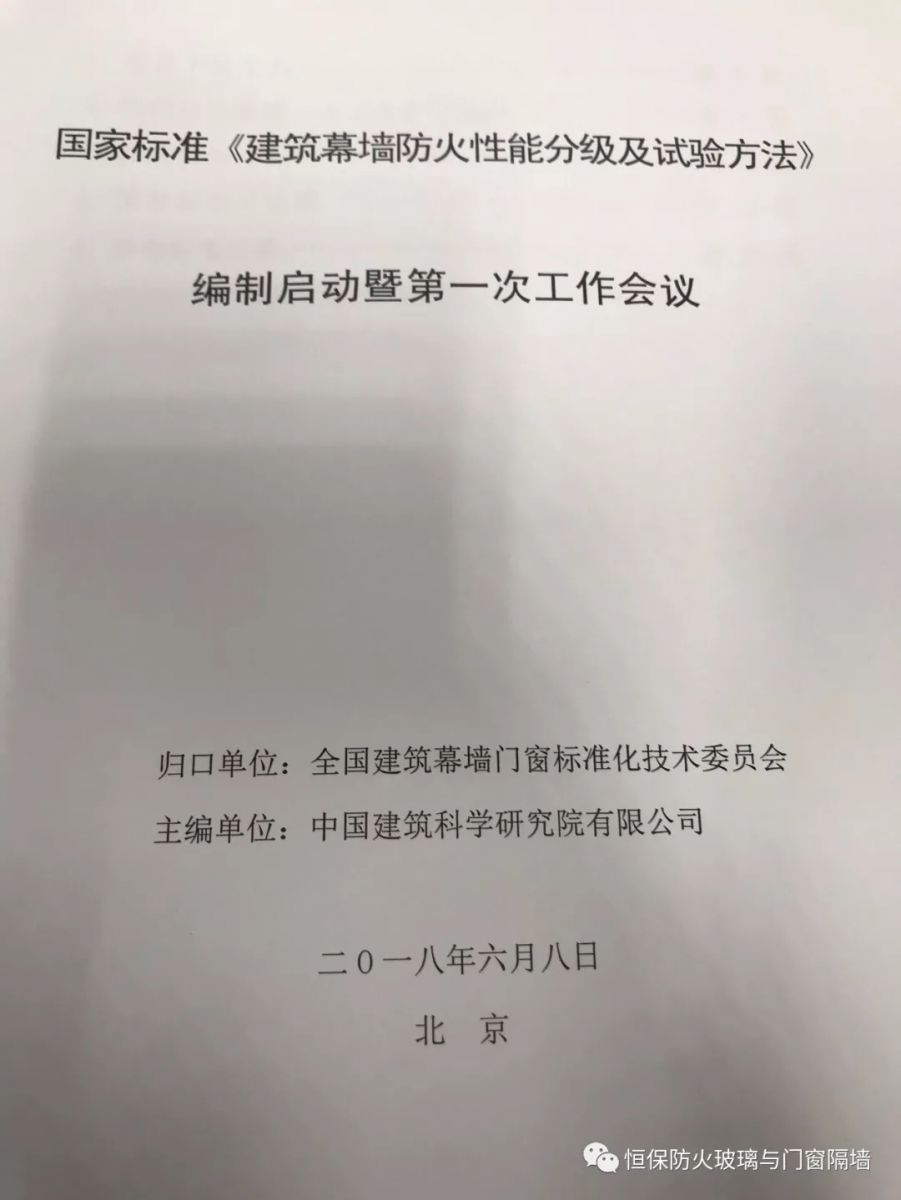 全國(guó)建筑幕墻門窗標(biāo)準(zhǔn)化技術(shù)委員會(huì)秘書(shū)處劉會(huì)濤高級(jí)工程師代表標(biāo)委員會(huì)宣讀編制組名單,標(biāo)準(zhǔn)編制啟動(dòng)會(huì)圓滿結(jié)束。鶴山恒保陳沃林總經(jīng)理也應(yīng)邀參加了這次的國(guó)家標(biāo)準(zhǔn)編制。