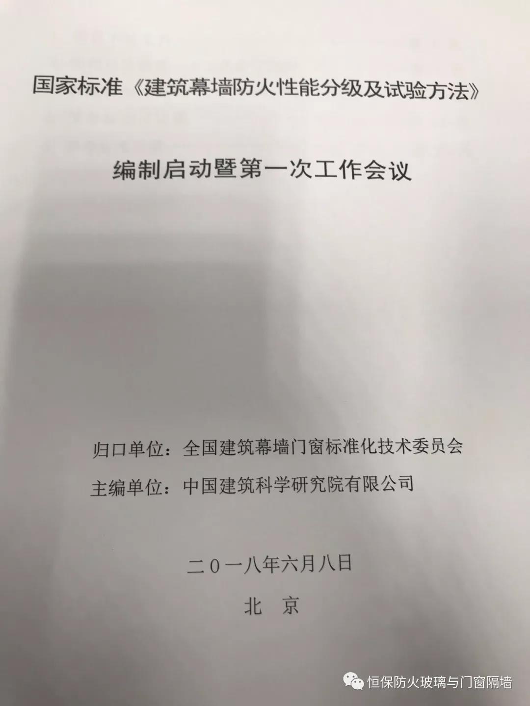 全國建筑幕墻門窗標(biāo)準(zhǔn)化技術(shù)委員會(huì)秘書處劉會(huì)濤高級(jí)工程師代表標(biāo)委員會(huì)宣讀編制組名單,標(biāo)準(zhǔn)編制啟動(dòng)會(huì)圓滿結(jié)束。鶴山恒保陳沃林總經(jīng)理也應(yīng)邀參加了這次的國家標(biāo)準(zhǔn)編制。
