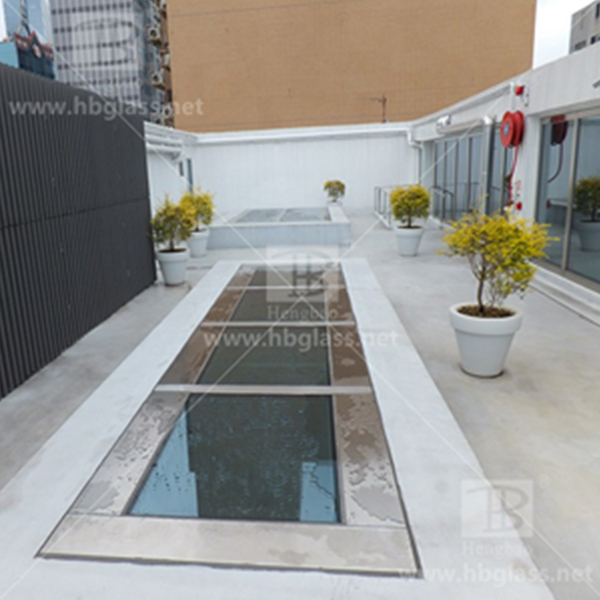 防火天頂地臺,其玻璃可以滿足在火災發生時達到防火、隔熱、承重作用,解決了采光井的火災煙通效應的問題,即使附近發生火災,仍可輕松走動;玻璃地臺每平方米承重500kg以上,達到水泥樓板的承重設計要求。一般用于商場、酒店、醫院、購物中心、物流中心、影劇院、車站、機場等政府辦公樓等場所,代替非防火的采光井,解決普通采光井不防火的問題。