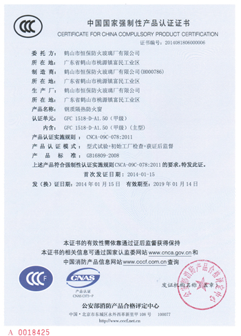 1.5 Hours Inspection of A Grade Fixed Fire-proof Window